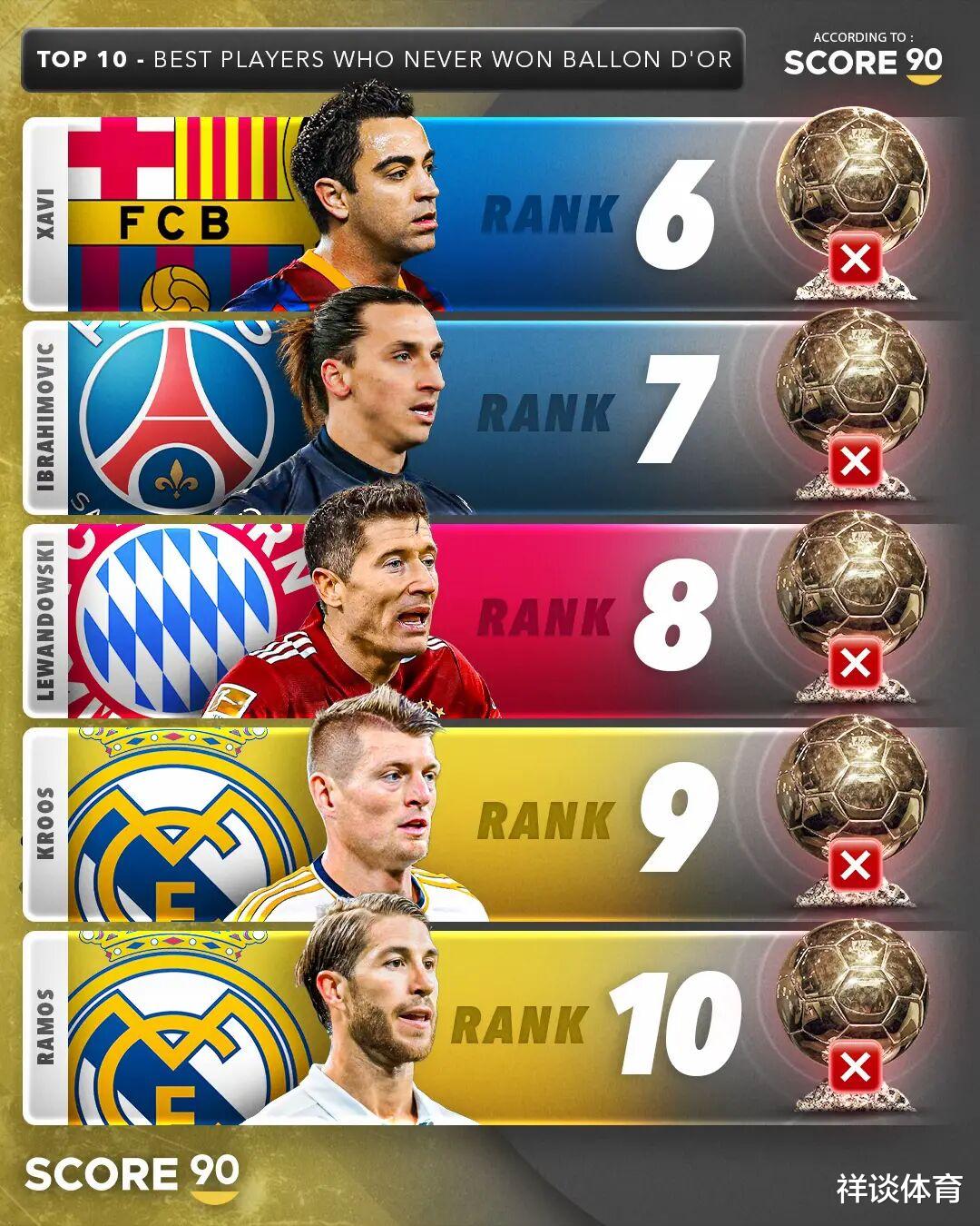 xếp thứ 6. Đối với tình huống của Xavi, bạn có thể tham khảo Iniesta. Họ đều là những tiền vệ hàng đầu, nhưng do những bất lợi về vị trí của họ, họ đã không trở thành người đầu tiên trong bóng đá trong một năm. Xếp thứ 7 là Ibrahimovic. Ibrahimovic có thể duy trì hiệu quả mục tiêu ổn định bất kể anh ấy đi đâu và mang lại chức vô địch giải đấu cho đội. Nhưng vấn đề là Ibrahimovic đã hoạt động kém ở Champions League, và anh ta thiếu những chiếc Trophys quan trọng và cũng đã thất bại trong việc ghi bàn trong Quả cầu vàng. Lewandowski xếp thứ 8, và ở một mức độ nào đó, Lewandowski được xếp hạng thấp và anh ta không nên có trong danh sách này. Tại sao bạn nói như vậy? Bởi vì Lewandowski là Ballon thực sự vào năm 2020, nên thật đáng tiếc khi Ligue 1 của Pháp kết thúc sớm, vì vậy Lewandowski là người chơi đáng tiếc nhất trong danh sách.