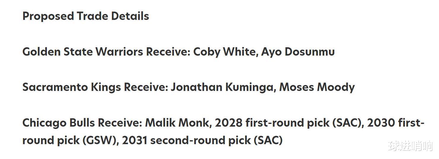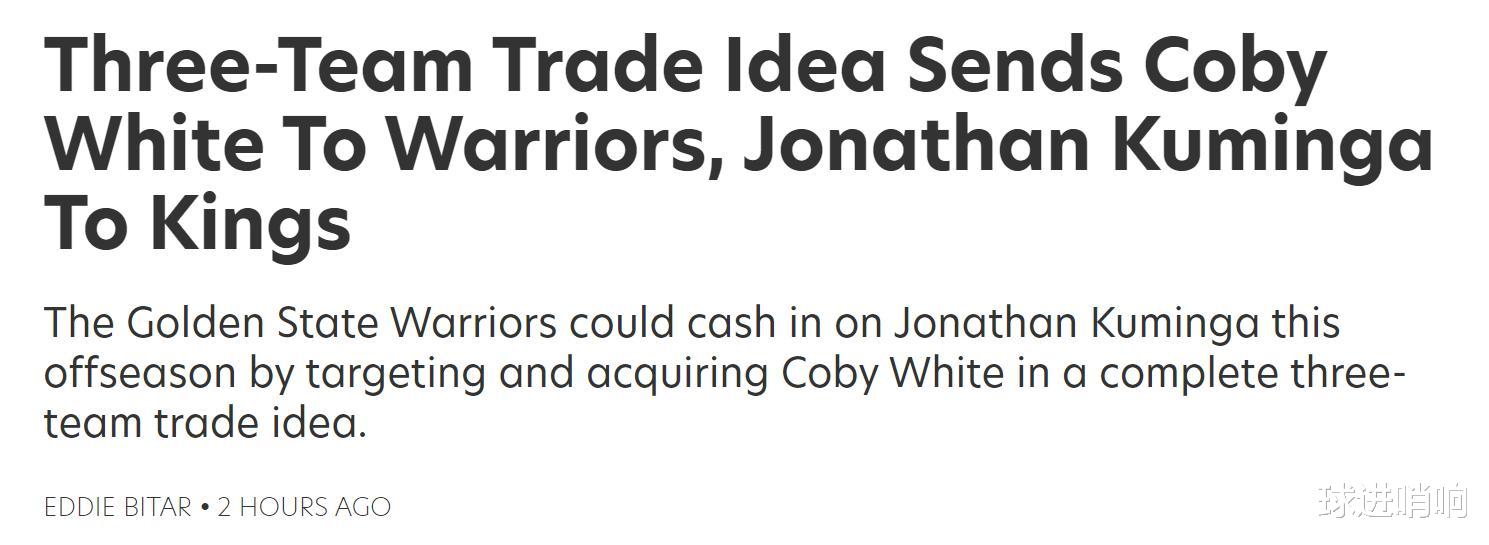 Mỗi người cần! Với Kuminga và các Chiến binh trong một trò hề rời khỏi đội và các vị vua đang nhìn nhau, truyền thông "Fadeawworld" của Hoa Kỳ đã đăng một kế hoạch giao dịch cho 3 đội và 5 người chơi. Thông qua việc giao dịch của các vị vua, họ đã giành được Kuminga như họ muốn, và các Chiến binh đã chào đón hai người chơi mới trong một lần. Farriors Kumingga Farce tiếp tục, so với vài mùa vừa qua, công việc ký kết, ký kết và giao dịch của mỗi đội vào mùa hè này đã được hoàn thành rất nhanh, gần như không có cuộc đàm phán kéo dài và đàm phán dài. Các Chiến binh và Kumingga là một trong số ít các vở opera xà phòng.