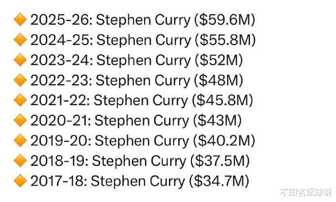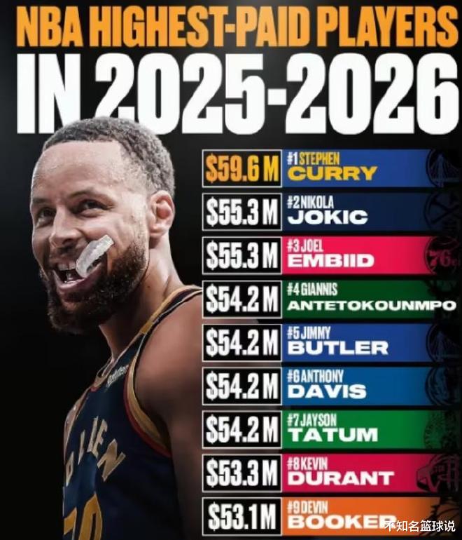Vào ngày 10 tháng 9, Hoopsrumors ở Hoa Kỳ đã đếm được bảng xếp hạng lương 20 cầu thủ NBA hàng đầu trong mùa giải mới 2025-26. Không có mức lương hàng năm của người chơi trong mùa giải mới đạt 60 triệu đô la Mỹ, nhưng Curry đạt gần 60 triệu đô la Mỹ với 59,6 triệu đô la Mỹ, và Curry đã lập kỷ lục cho giải đấu lương đầu tiên trong 9 mùa liên tiếp. Embiid và Jokic gắn liền với vị trí thứ hai trong giải đấu với 55,224,526 USD, trong khi James xếp thứ 12 trong giải đấu với 52,627.153 USD.