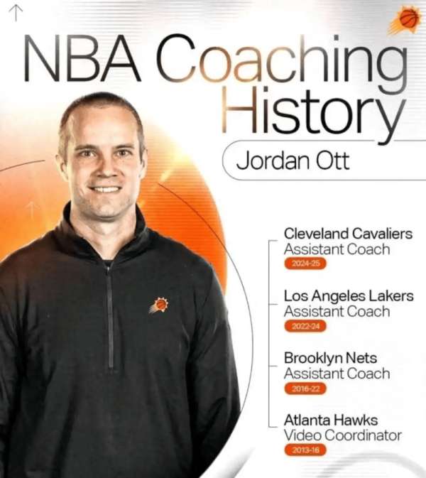 Huấn luyện viên mới: Suns đã sa thải các huấn luyện viên trong những năm gần đây, bao gồm Vogel, Monty Williams và Budenholzer. Hiện đội trẻ mới này được huấn luyện bởi huấn luyện viên trẻ Jordan Ott. Anh ấy từng là trợ lý huấn luyện viên trong ban huấn luyện Cavaliers mùa trước và đã giúp Cavaliers đạt được thành tích rất tốt trong mùa giải thường xuyên. Anh ấy giỏi sử dụng phân tích dữ liệu để cải thiện cả tấn công và phòng thủ, đồng thời rất coi trọng tinh thần đồng đội.